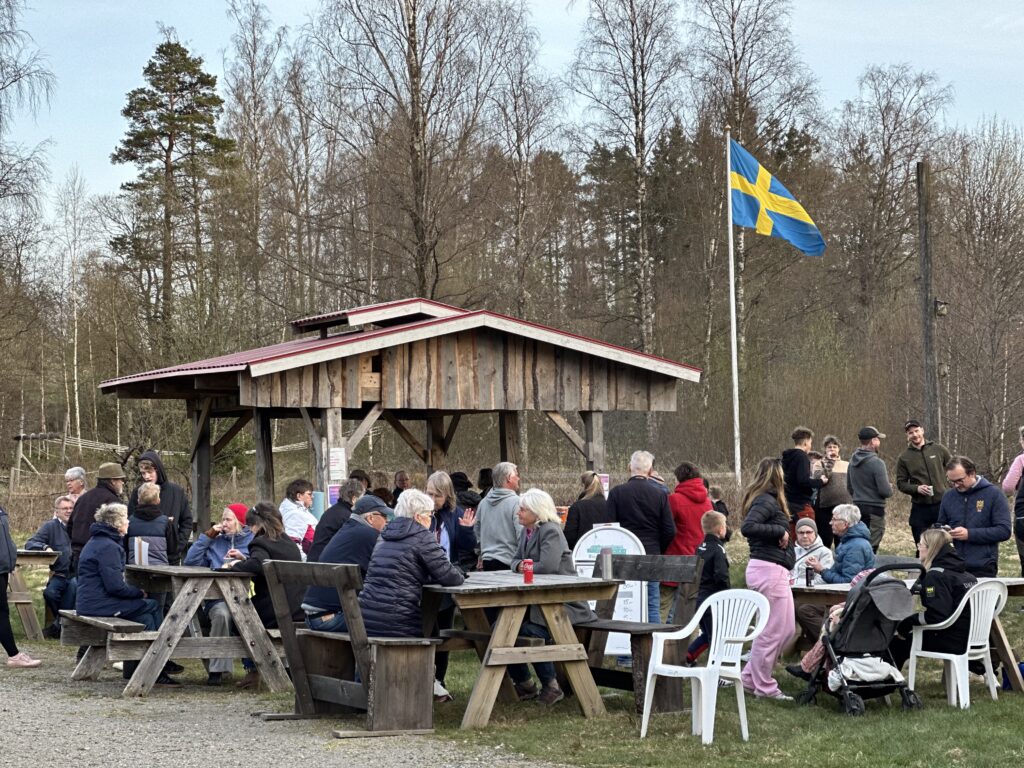 Grillplats under tak. Gott om sittplatser. Bokas via Lägerexpeditionen.